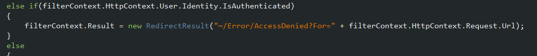 - If I am already logged in but access a secure resource (controller / action) redirecting to the login page is far from ideal, an access denied view makes more sense